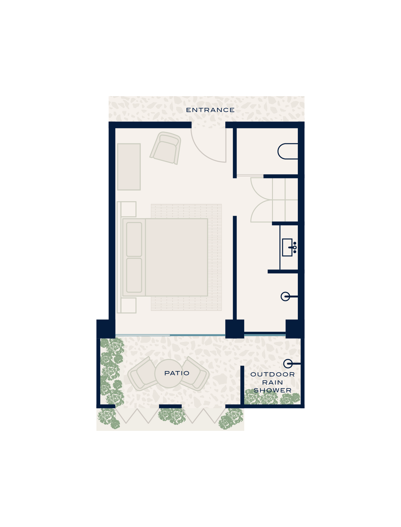 Experience barefoot luxury with 40m² of private indoor and outdoor space, designed with a timeless aesthetic.
