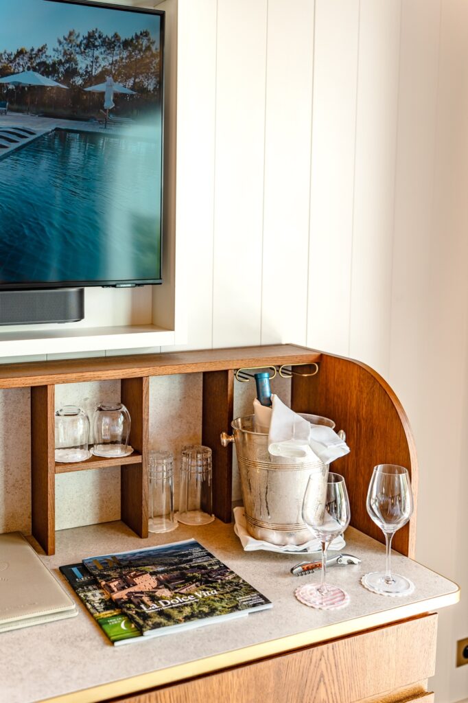 Découvrez l’élégance authentique de l’épi dans ce bungalow spacieux, où une terrasse blanche épurée s’ouvre sur les dunes de pampelonne.